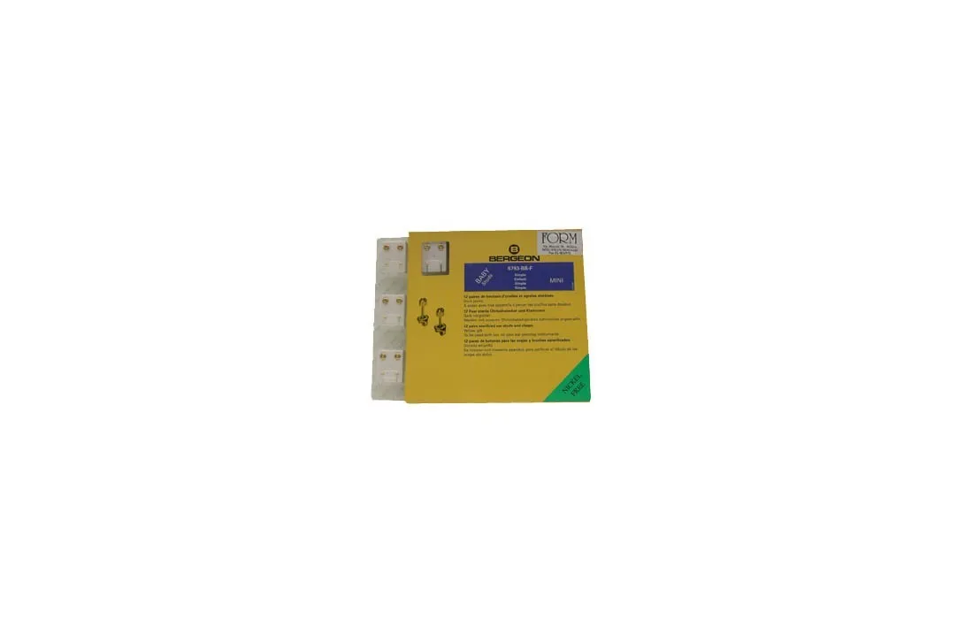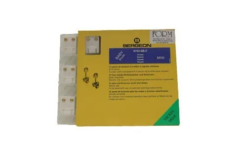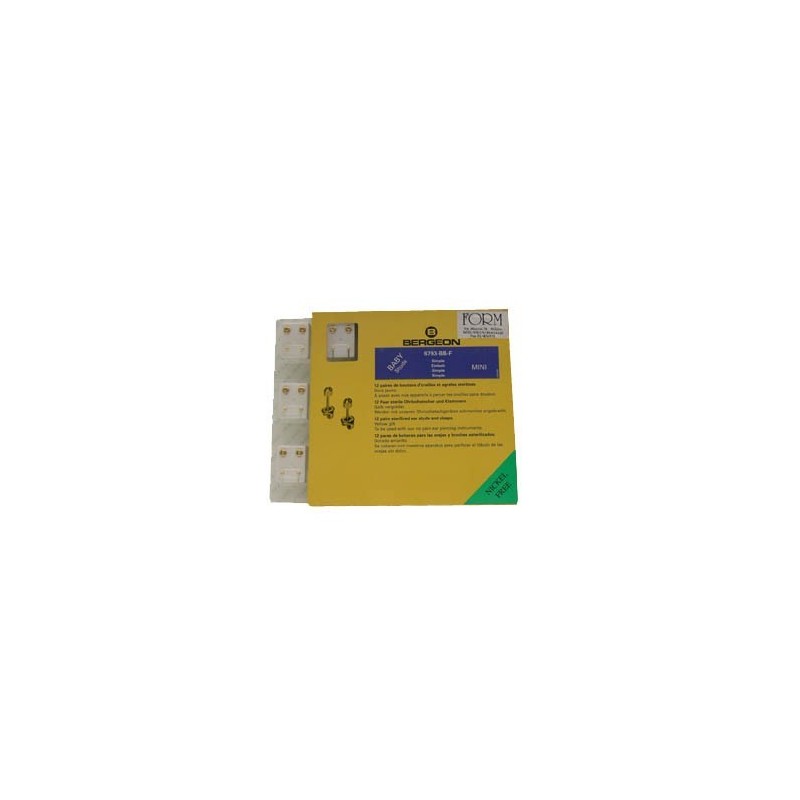 Confezione di 12 paia modello baby con gambo corto a forma di pallina. Diametro di 2.48 m/m. Materiale: acciaio laminato senza nickel come da normativa CE