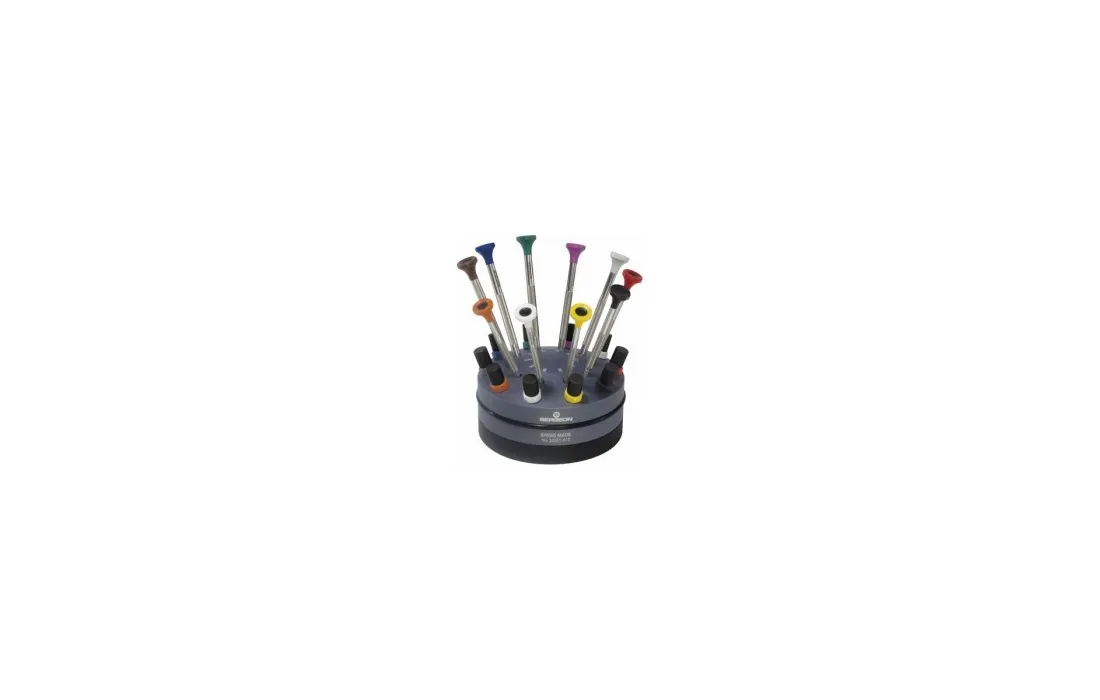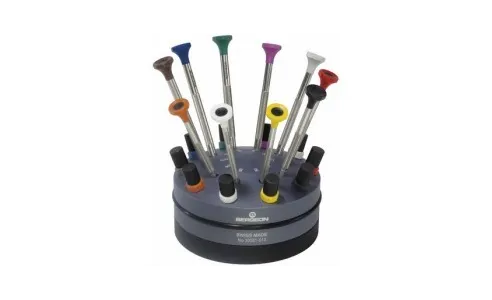 Zoccolo girevole con 10 cacciaviti in acciaio inox temperato testa in POM colorata e lame di ricambio