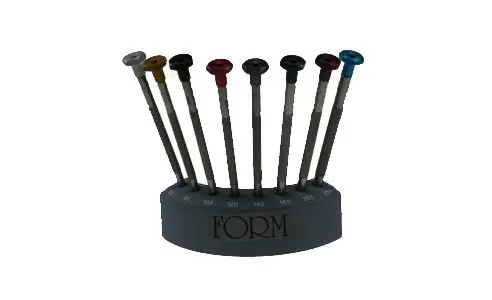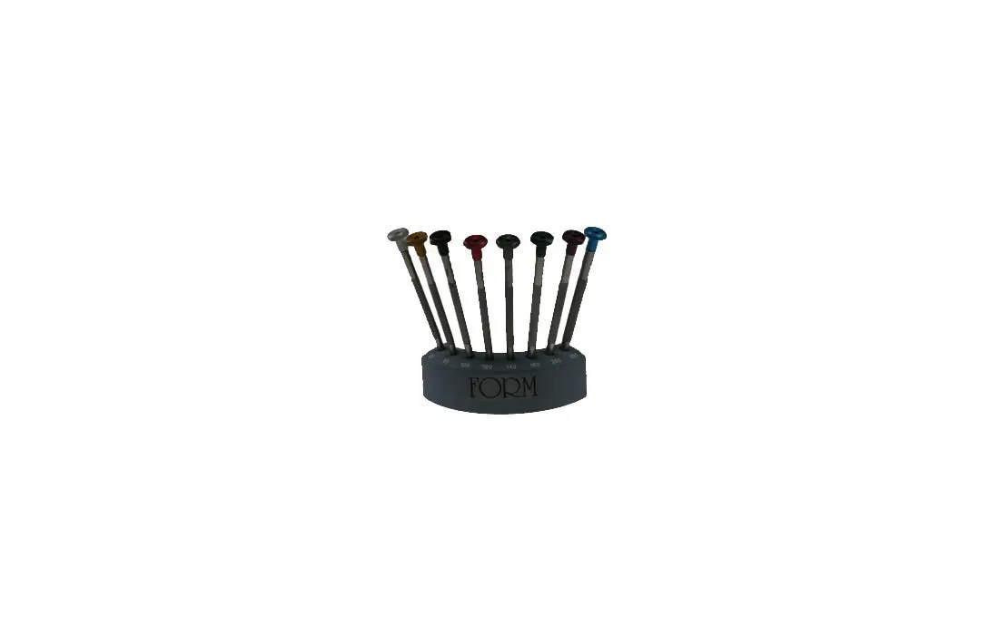 Base in metallo semi curva con 8 pezzi di cacciaviti in acciaio con lama intercambiabile e testa girevole su cuscinetto a sfere