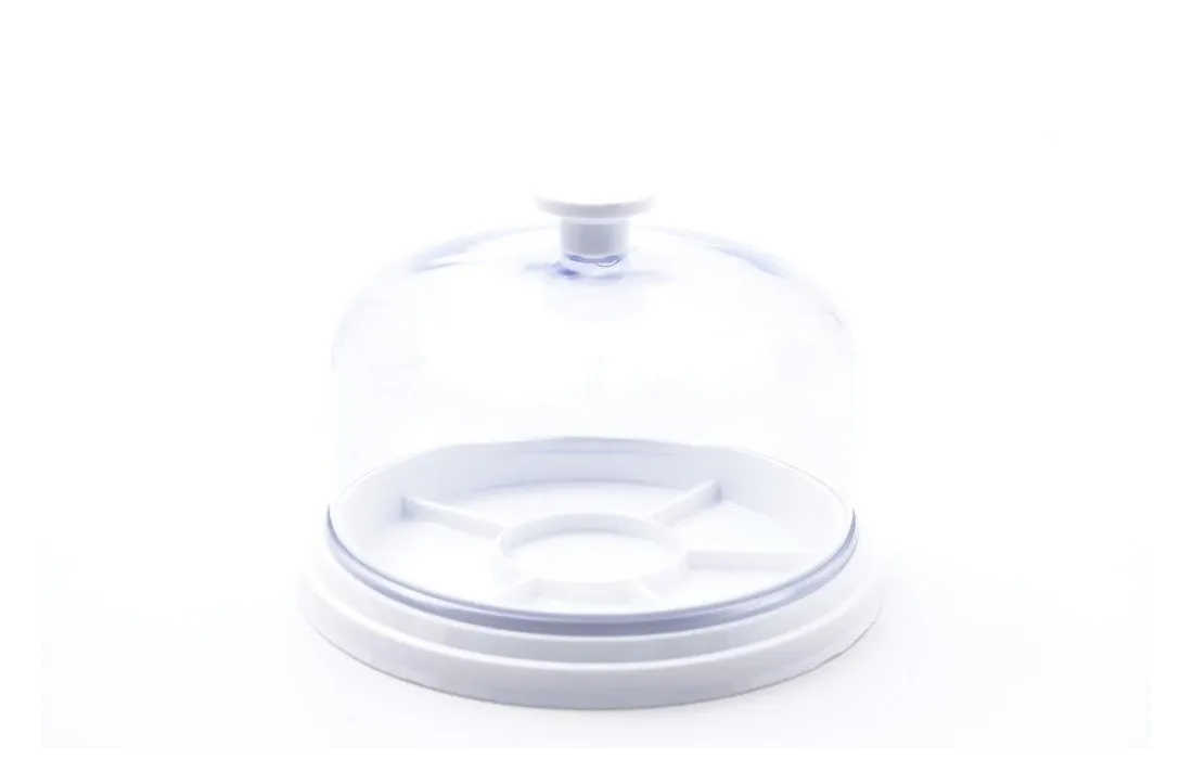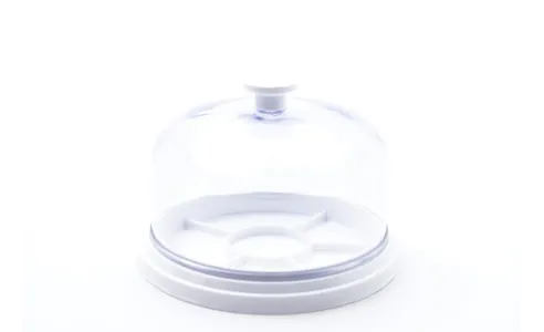 Campana coprimovimenti in plex con piattello, diametro 88 per 45 mm di altezza.
