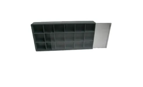 Scatola in plex con coperchio scorrevole a 18 scomparti