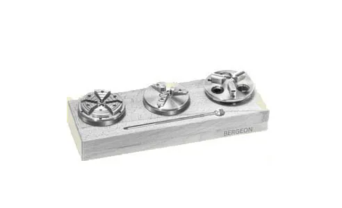 Serie di 3 pezzi mandrini per tornio 8 m/m con chiusura a pinze coniche concave più plateaux a 3 pinze e punta autocentrante contenitore in legno