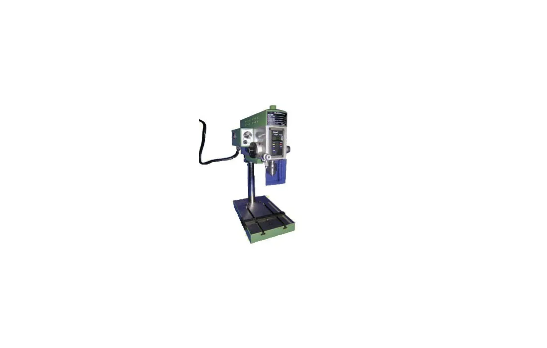 150 w, mandrino da 0.5 a 6 m/m, dotato di lettura velocità digitale, variatore di velocità e regolazione di perforazione micrometri. Altezza totale 40 cm base 16.50 x 27.50 cm