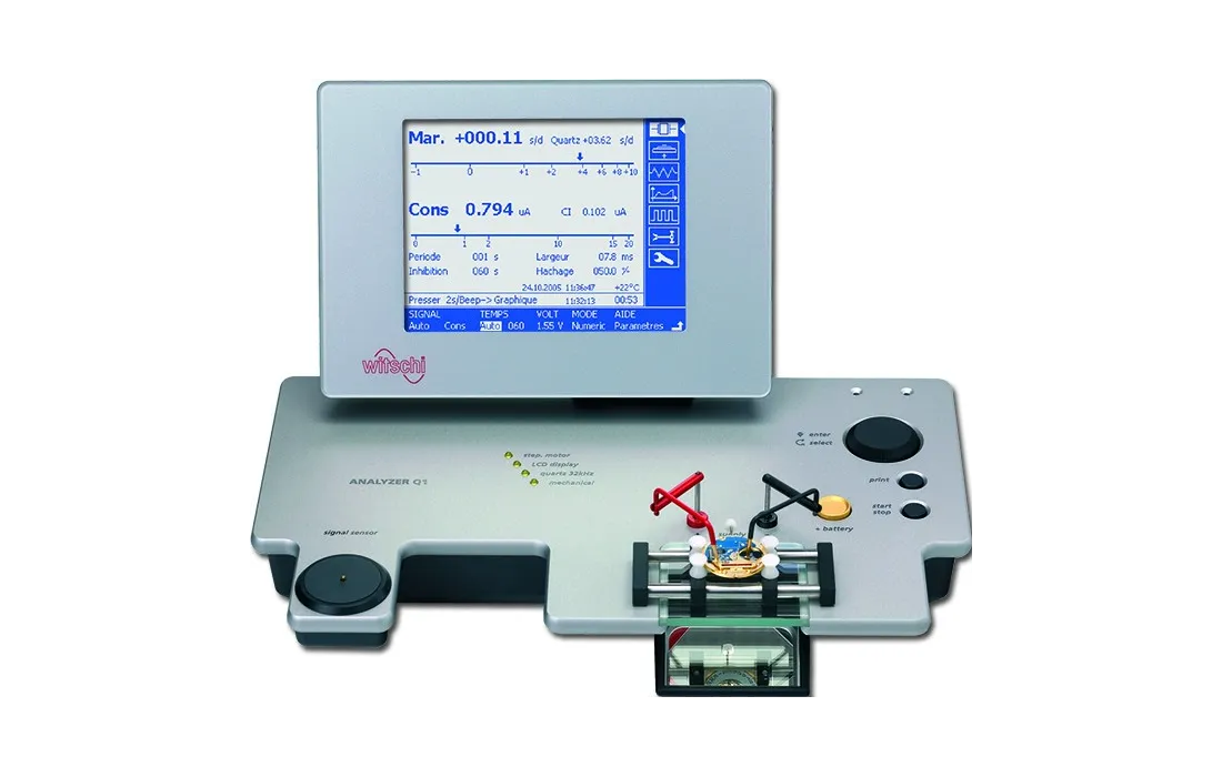 Tester di laboratorio professionale WITSCHI Analyzer Q1 per controllare orologi a quartz e meccanici con ampio display lcd e triplo sensore, per rilevare i segnali acustici, capacitivi e magnetici