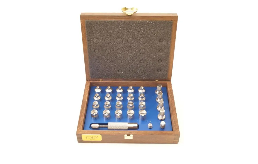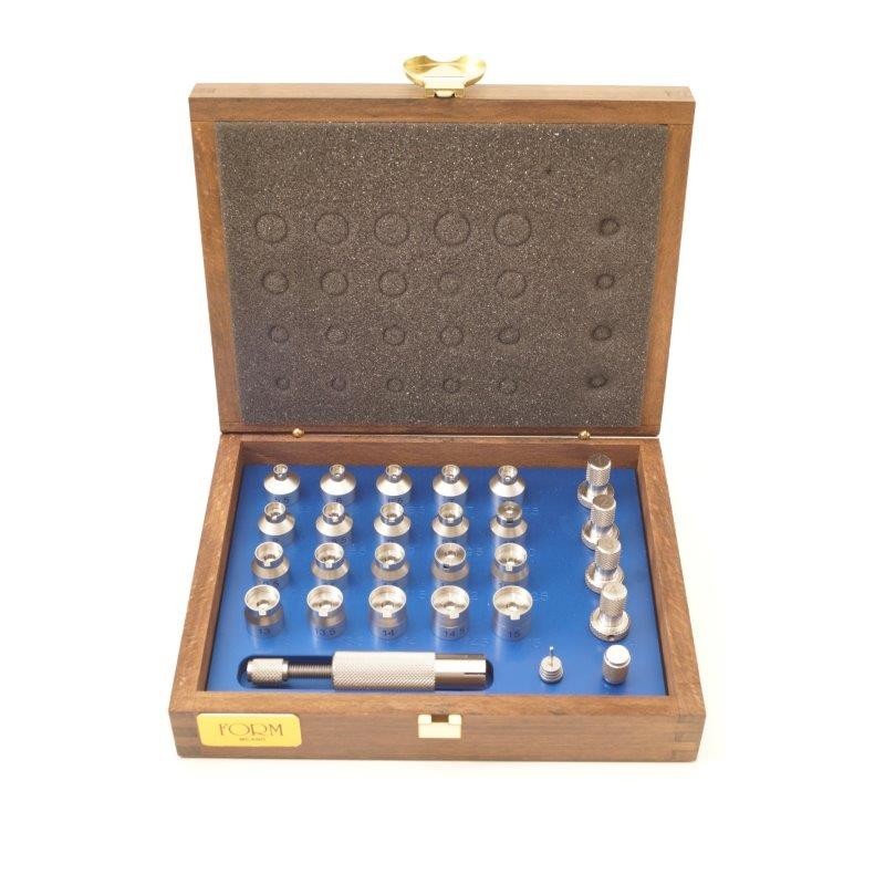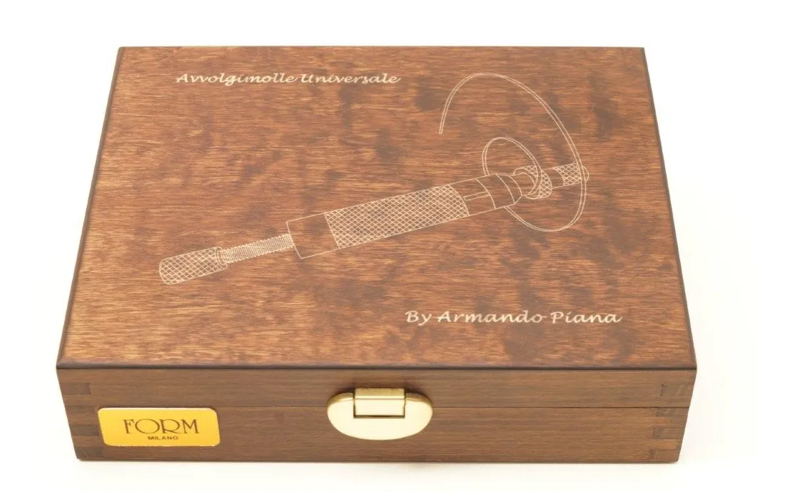 Estrapades universale completo di 20 avvolgi molle in acciaio tornito e serigrafati per diametro, set da diametro 5.5 a 15 m/m per molle manuale e automatico con attacco destro o sinistro, scatola in legno massello