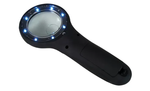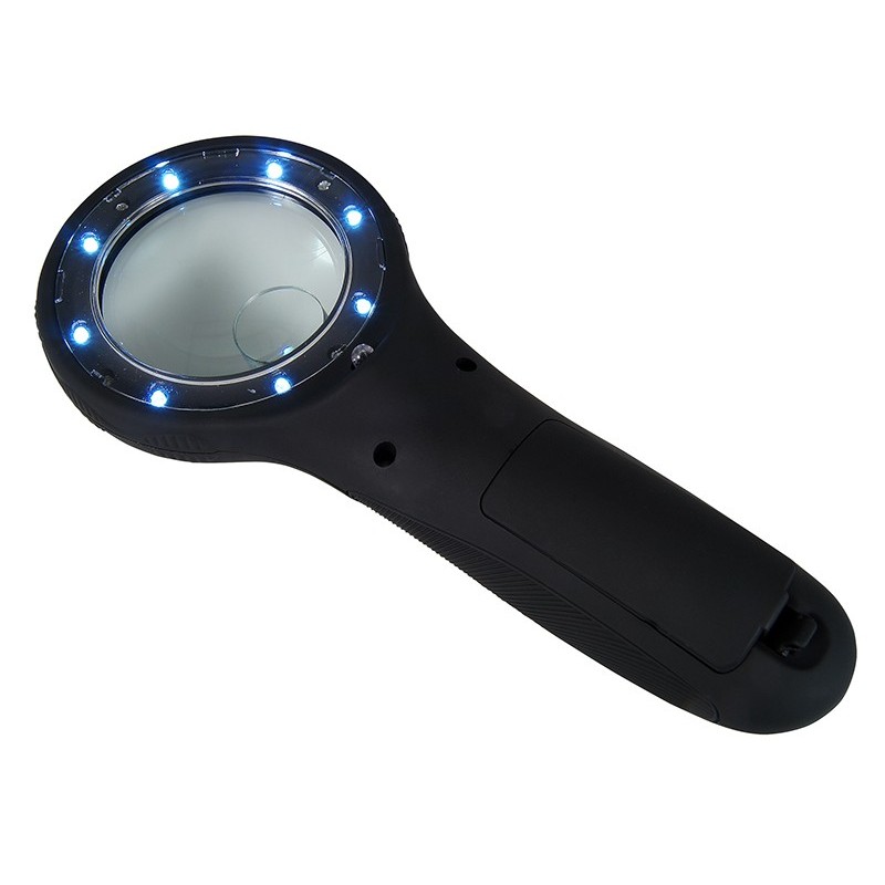 Lente doppio ingrandimento 5 e 10 x con illuminazione led bianca ed UV