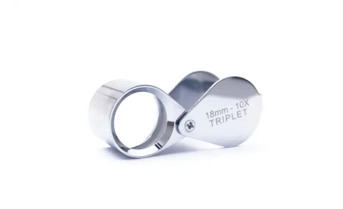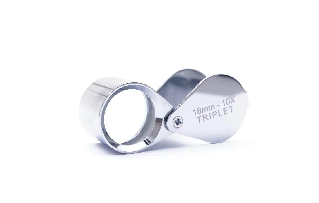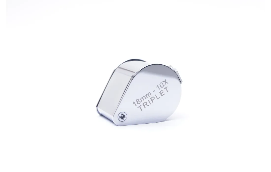 Lente cromata 10 x tascabile, struttura in ottone cromato lucido