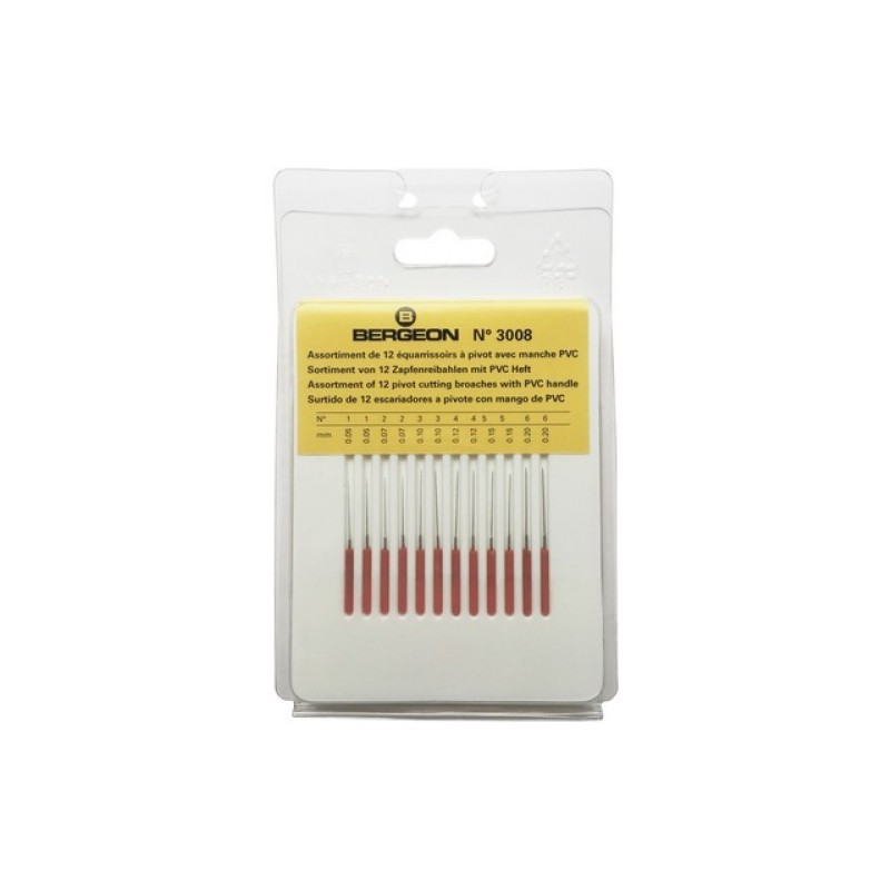 Assortimento di 12 pezzi alesatori per sferini secondi manico in pvc da diametro 0.05 a 0.20