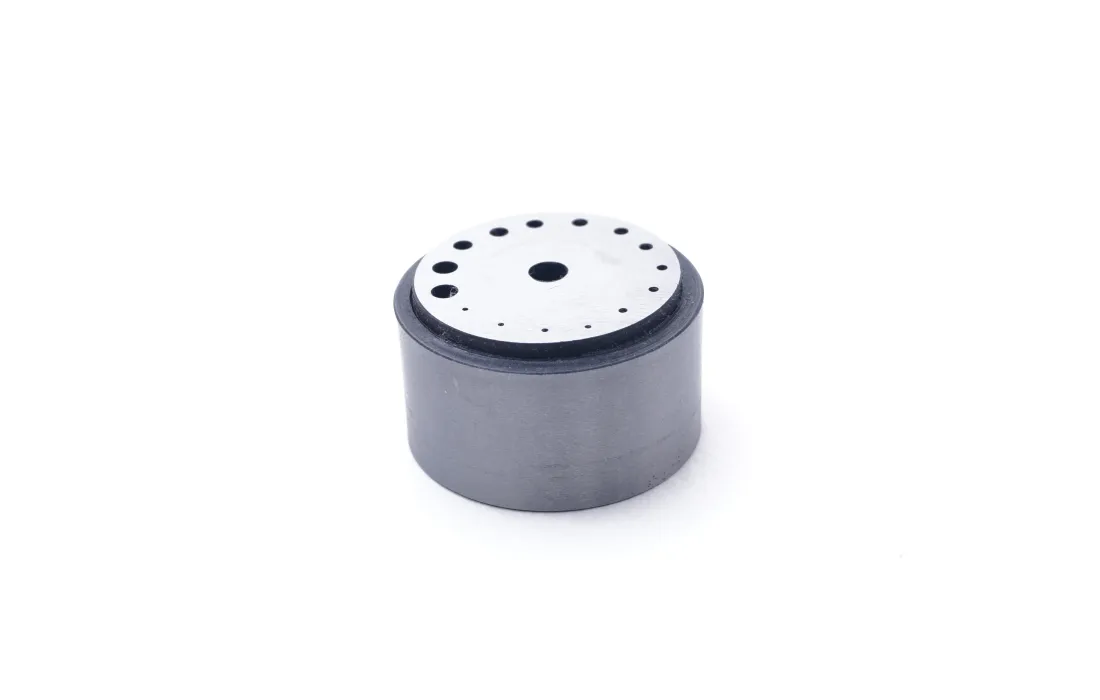 Tassello in acciaio a 16 fori passanti, diametro 33 m/m ht 19 m/m