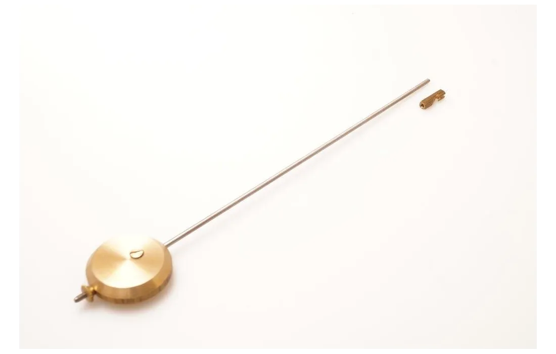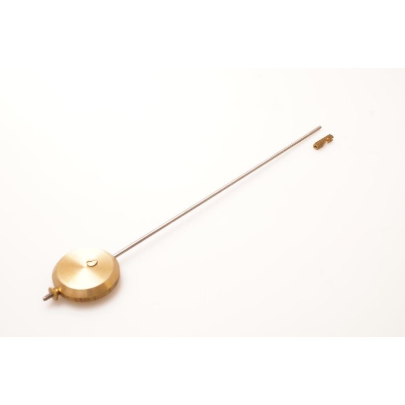 Pendolo per parigina in ottone con registrazione micrometrica, vite di bloccaggio su asta rigida lunghezza 240 m/m diametro della lente 35,00 m/m