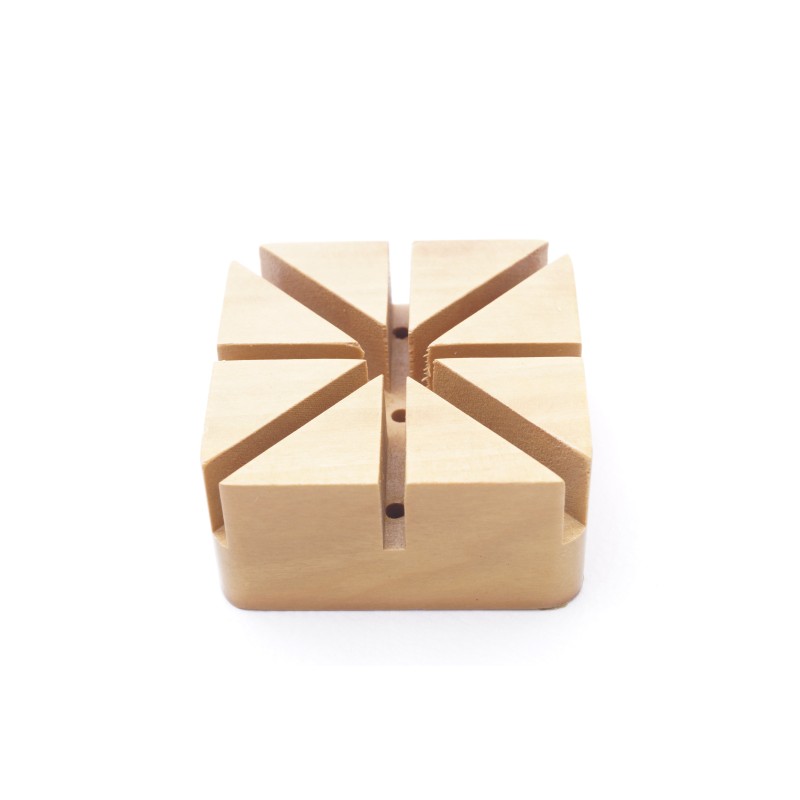 Tassello in legno per spernare i bracciali, dimensioni:60 x 60 m/m con 4 differenti tagli