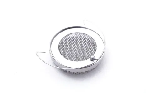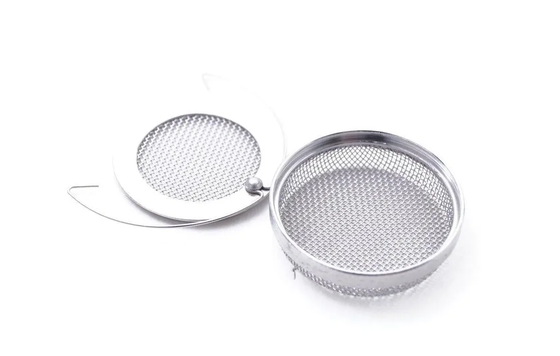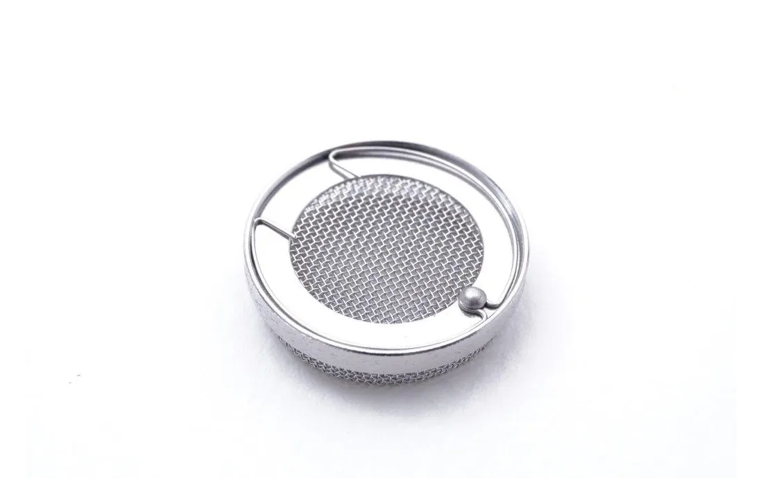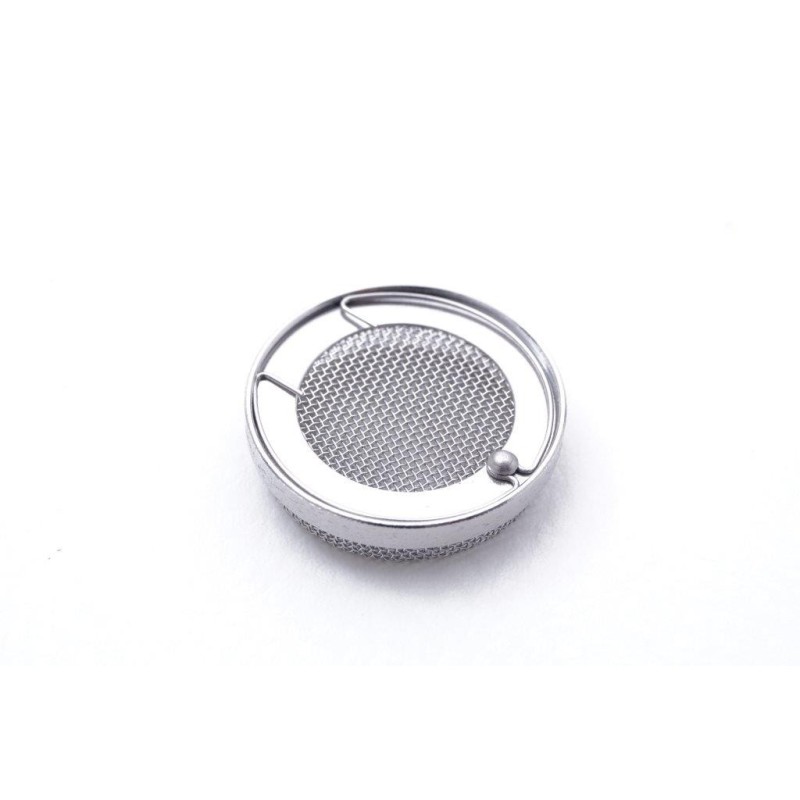 Micro paniere in acciaio inox per piccolissimi pezzi, diam. 27 m/m ht 7 m/m coperchio con bloccaggio a molla
