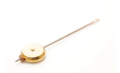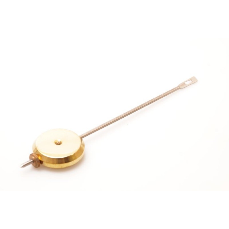 Pendolo in ottone con dado di registro e vite di blocco centrale. diametro 35,00 mm per 10,00 mm di spessore lunghezza tot. 170 mm