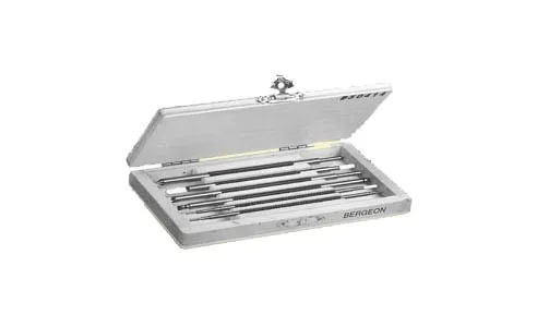 Assortimento di 6 frese doppie in scatola di legno ideali per: abbassamento testa delle viti/finitura piedini quadrante/rifinitura dei fori nelle platine ecc.