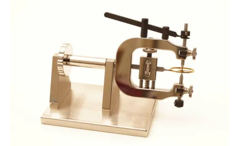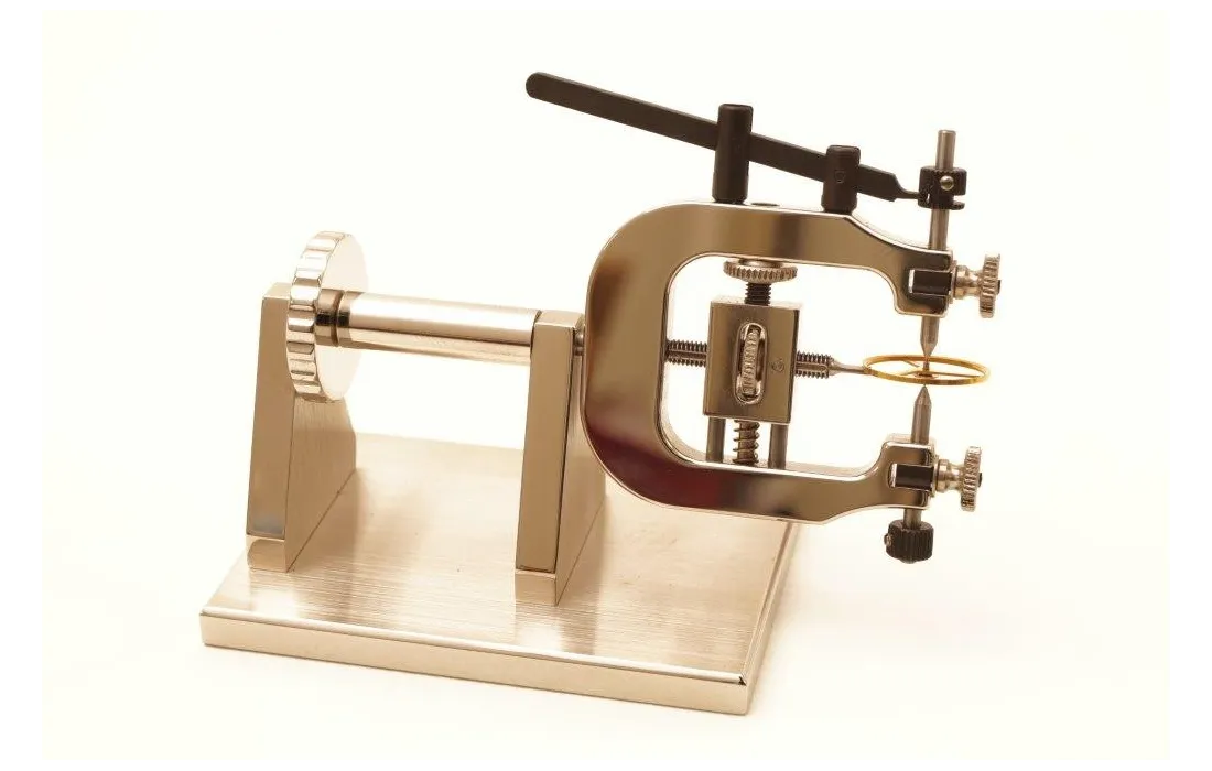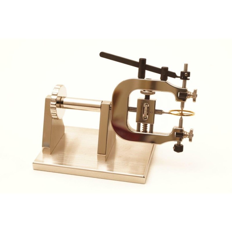 Ottocifre con base per un controllo in piano senza vibrazioni, contropivot regolabili in altezza e bloccaggio tramite corone di serraggio, apertura/chiusura tramite leva con ritorno a molla, lama di riferimento regolabile in profondità e in altezza, rotazione del corpo porta bilanciere fino a 270°