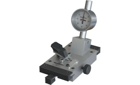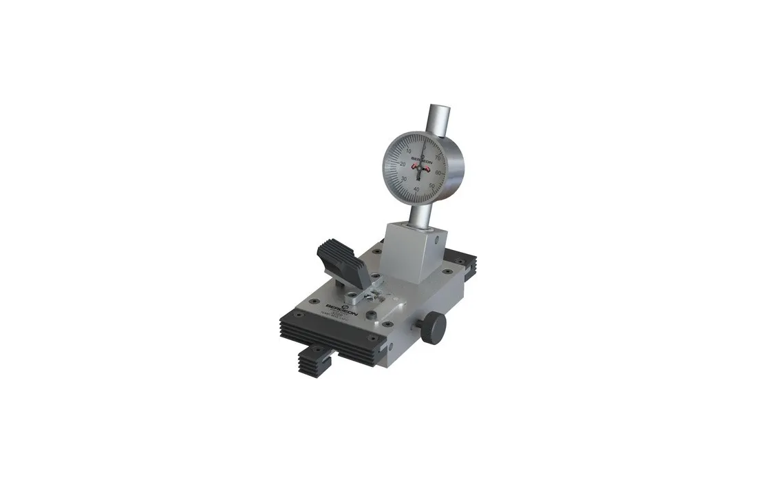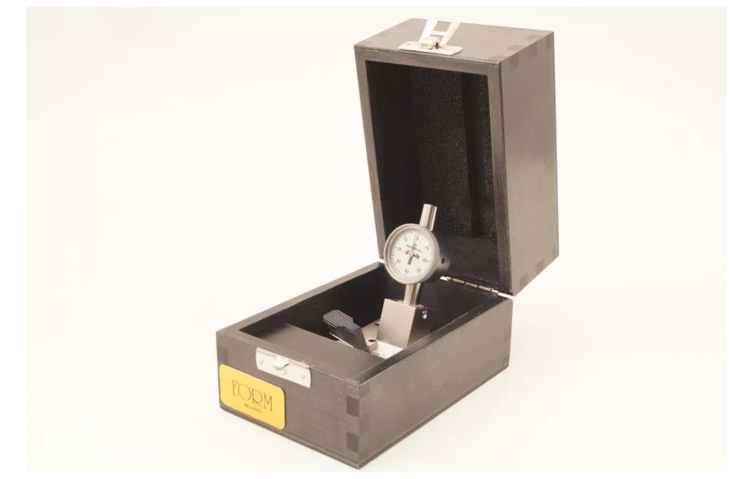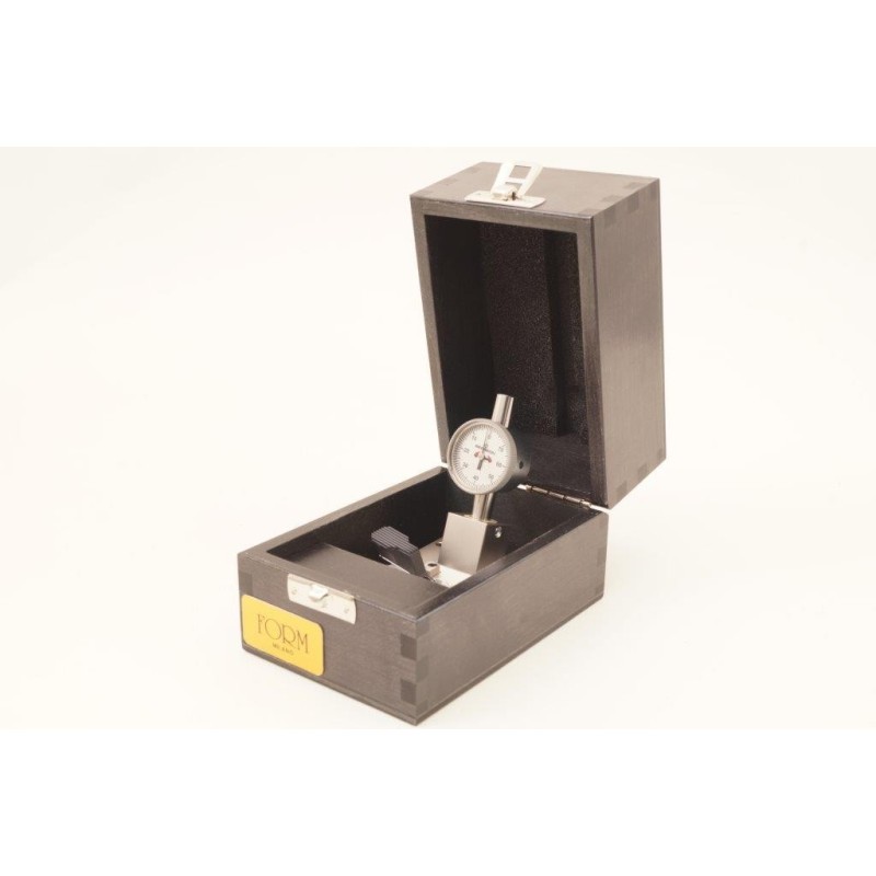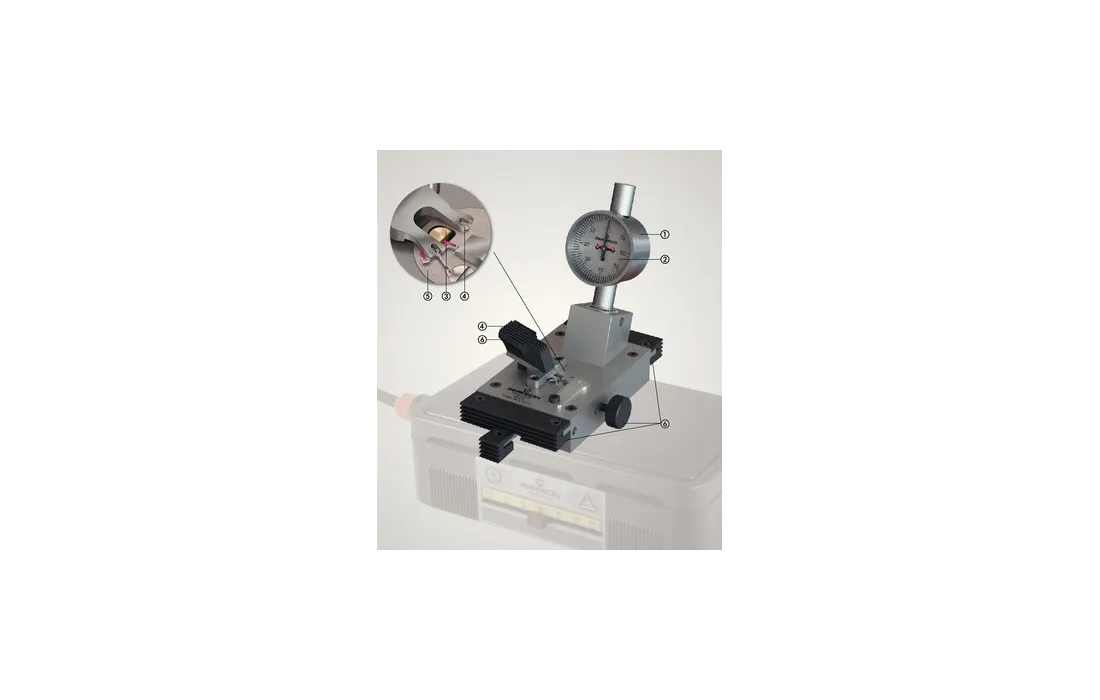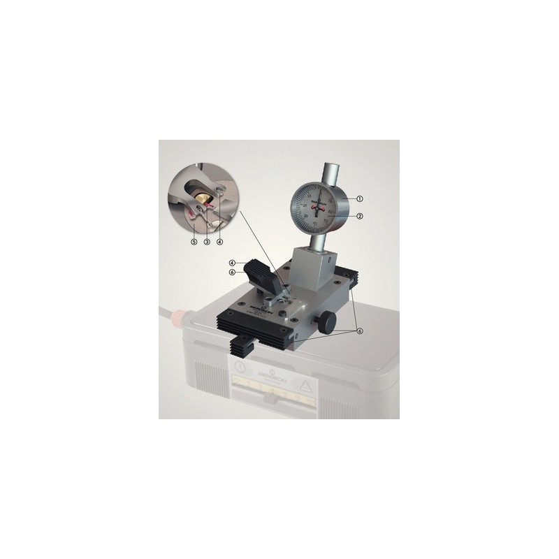 1- quadrante centrale di facile lettura - 2 graduazione a 10 micron - 3 supporto di sollevamento e registrazione con ampio gioco - 4 bloccaggio semplificato, grazie a una semplice pressione della leva isolata - 5 piastra del supporto ancora in acciaio inox con due centraggi di diverso diametro per adattare al meglio il diametro della tiges ancora - 6 tutte le parti di contatto manuale sono ricoperte da uno speciale materiale sintetico resistente fino a 150° temperatura massima di lavoro 130°