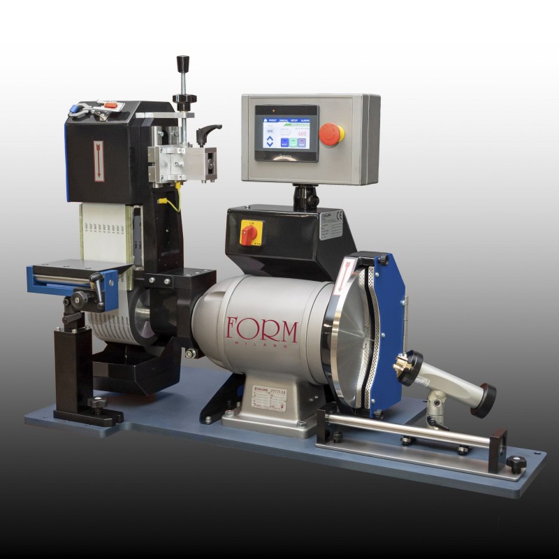 Lapidello e nastratrice in unica soluzione. Disco in acciaio inox AISI 304 da 250 mm nastro da 1000 x 100 mm