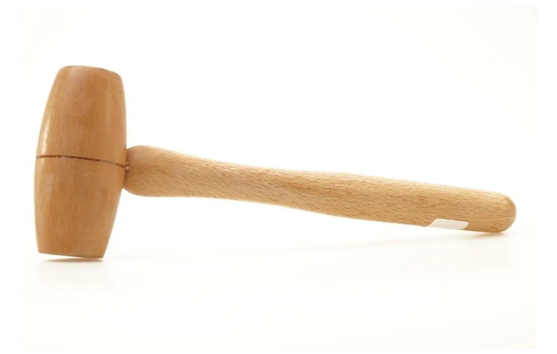 Martello/mazzuola in legno, lg 24 - ht 7,5 - diam. 3,5 cm - peso 94 gr.