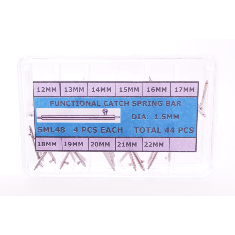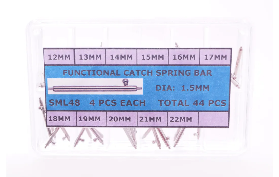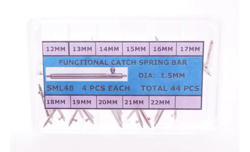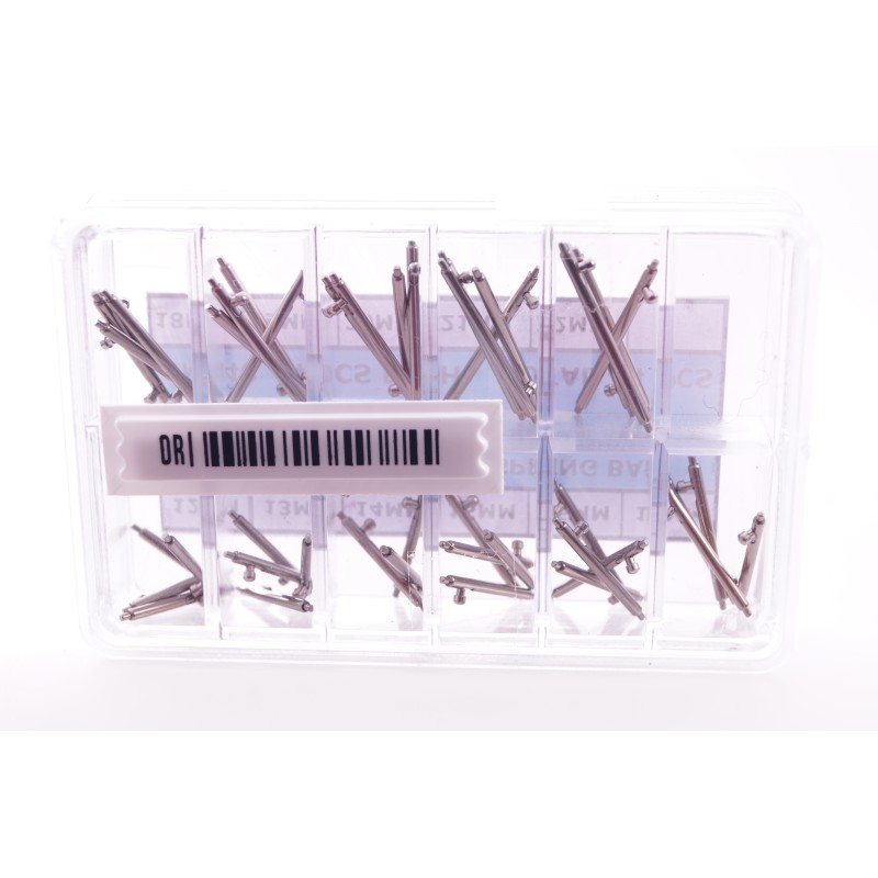 Assortimento di 44 pz. ansette in acciaio a montaggio svelto tipo svizzero, diametro 1,5 mm da 12 a 22 mm