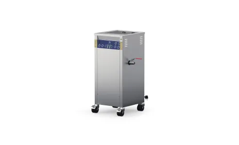 dimensioni interno vasca 330x300x300 mm - dimensioni esterne 500x550x936 mm - frequenza 25/45 kHz variabile - consumo 2000 W - potenza effettiva 480(25/45kHz) - picco max 1920 (25/45kHz) picco max in modalità dynamic 2400 w - classe di protezione IP23- funzione degas - scarico laterale - temperatura da 30 a 80° - struttura totalmente i acciaio inox - comandi tramite pannello LCD -