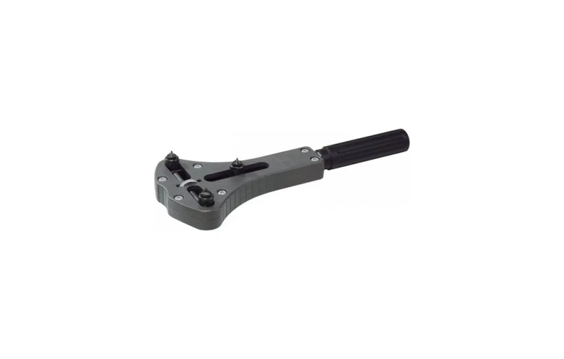 presa perfetta ed una eccellente ergonomia, apertura/chiusura per fondelli da 18 a 62 mm di diametro con 3 tasselli intercambiabili e 4 diverse punte, registrazione su 2 assi, regolabili tramite ruota zigrinata e manico d'impugnatura.