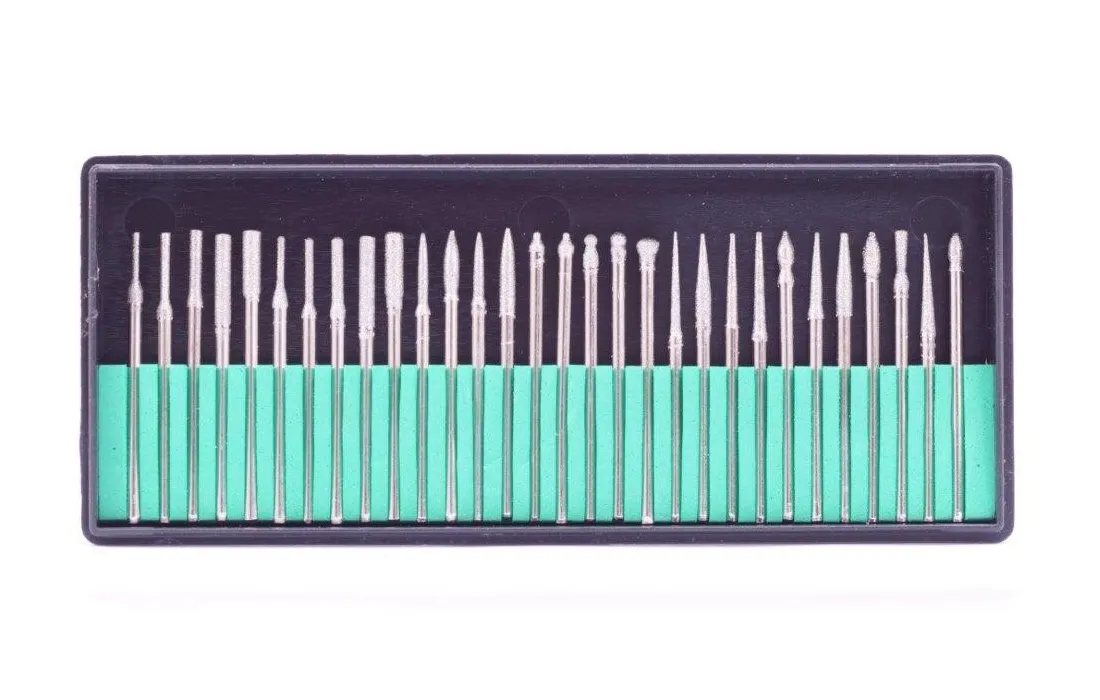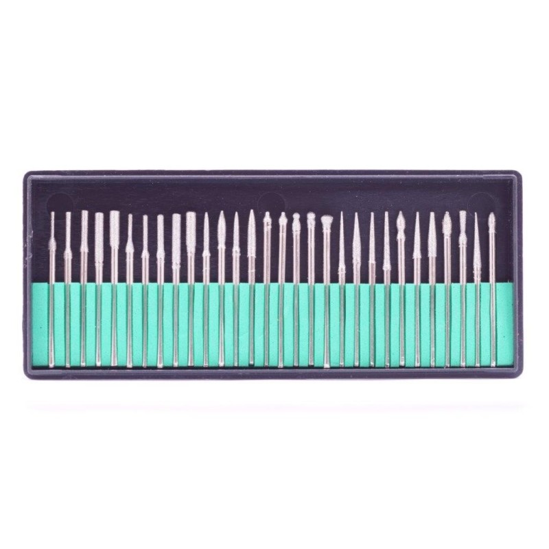 Assortimento di 30 frese diamantate diametro dell'attacco 2.35 mm