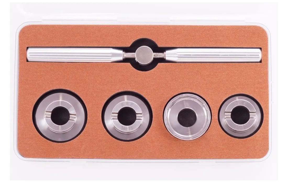 Chiave a manubrio con 4 tasselli per apertura/chiusura orologi Breitling 34 - 35 - 36 - 38 mm. I tasselli sono compatibili per le chiavi a volano Bergeon ref. 5700.
