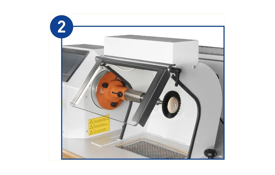 Motore da 2,4 cv estremamente silenzioso - rotazioni a velocità variabile tramite touchscreen 10"per funzioni programmate e personalizzabili - un solo albero per più spazzole in contemporanea o singolarmente, anche con diametri oltre 200 mm, eccellente aspirazione, disco lapidello da 240 mm (opzionale) a richiesta motore compatibili con tutti gli accessori Crevoisier