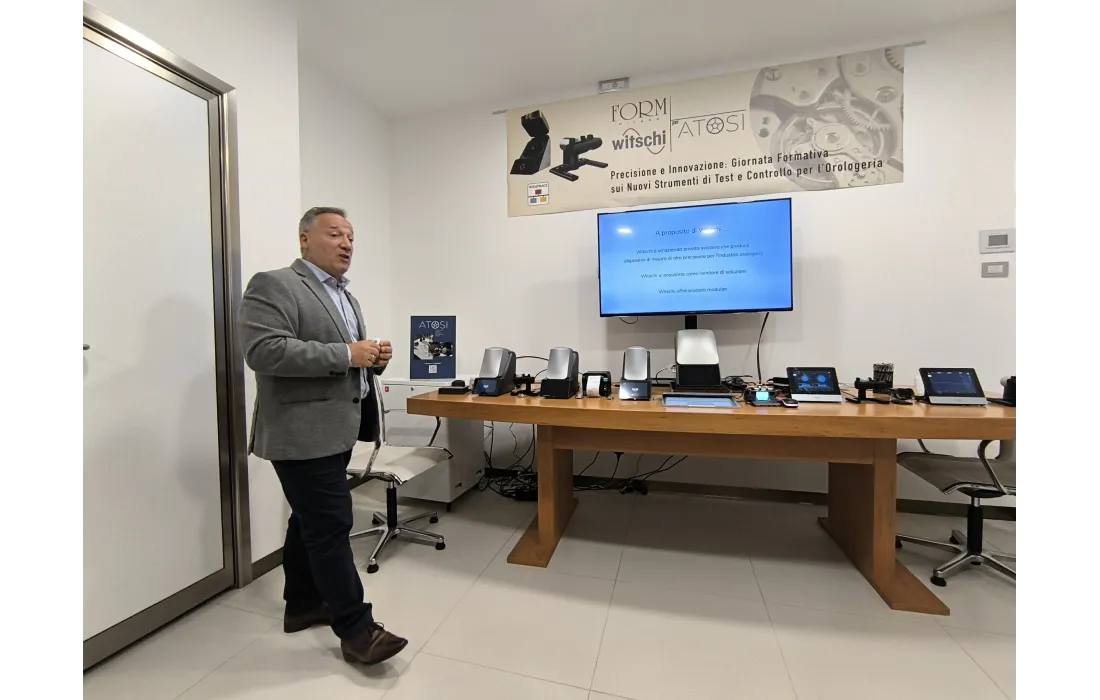 Nella giornata di lunedì 07/10/2024, nella sede di Form a Milano, si è tenuta la giornata formativa di presentazione e approfondimento della nuova generazione di prodotti Witschi, rivolata agli iscritti dell'associazione di orologiai ATOSI; tra i dispositivi mostrati le macchina prova impermeabilità ProofMaster, la linea ChronoMaster, il display Terminal e la nuovissima WAIO