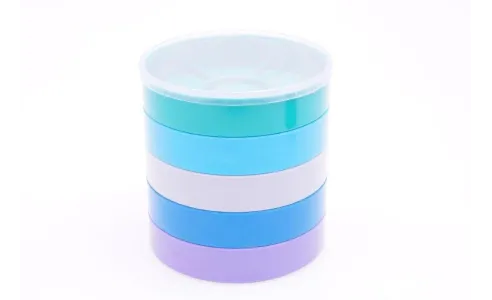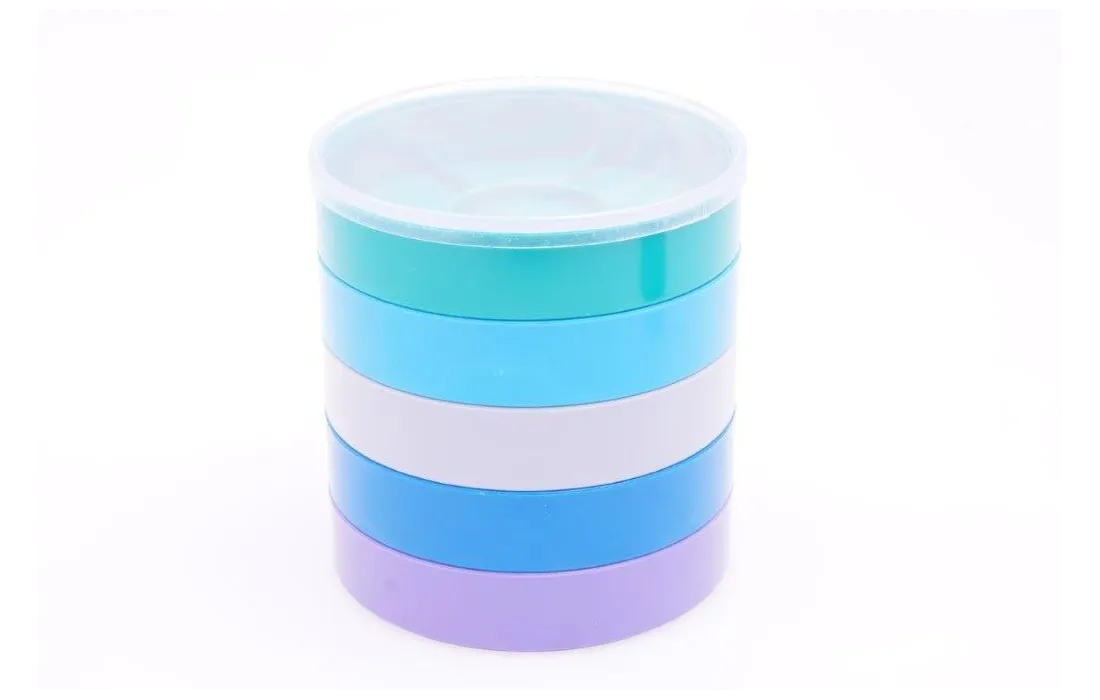set di sei piattelli porta pezzi colorati con coperchio trasparente, diam. 85 mm ht cad.17,00 mm 6 divisioni per piattello