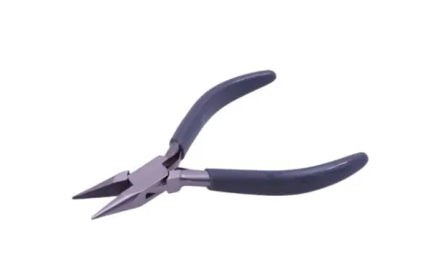 Pinza a becchi semi tondi e zigrinati, con manici ricoperti da materiale acrilico antiscivolo e molle di ritorno, lunghezza 130 mm