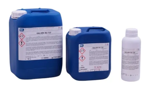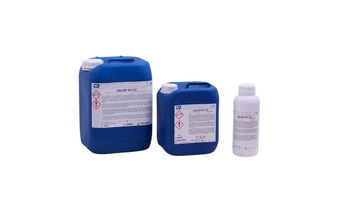 Soluzione Galvex, liquido ideale per la pulizia delle paste di lucidatura e dello sporco indurito su tutti i tipi di metallo tramite bagno ad ultrasuoni, da diluire in acqua dal 3 al 5%
