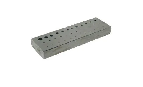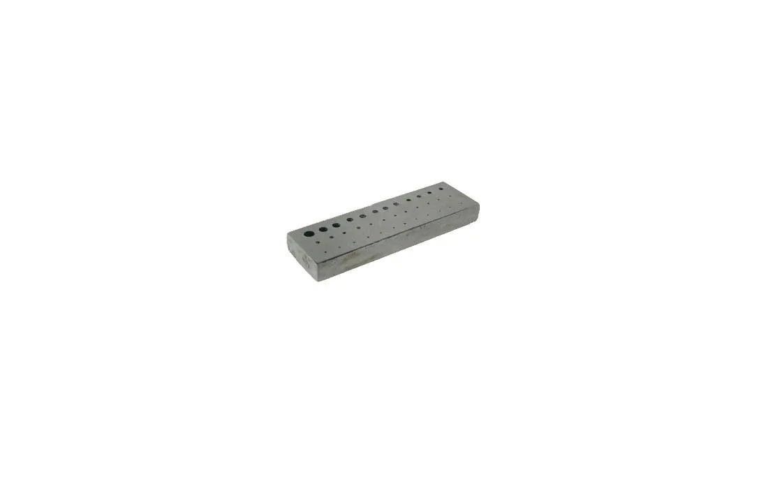 Tassello forato in acciaio 36 fori da 0.5 a 4 m/m dimensioni 77x25 m/m
