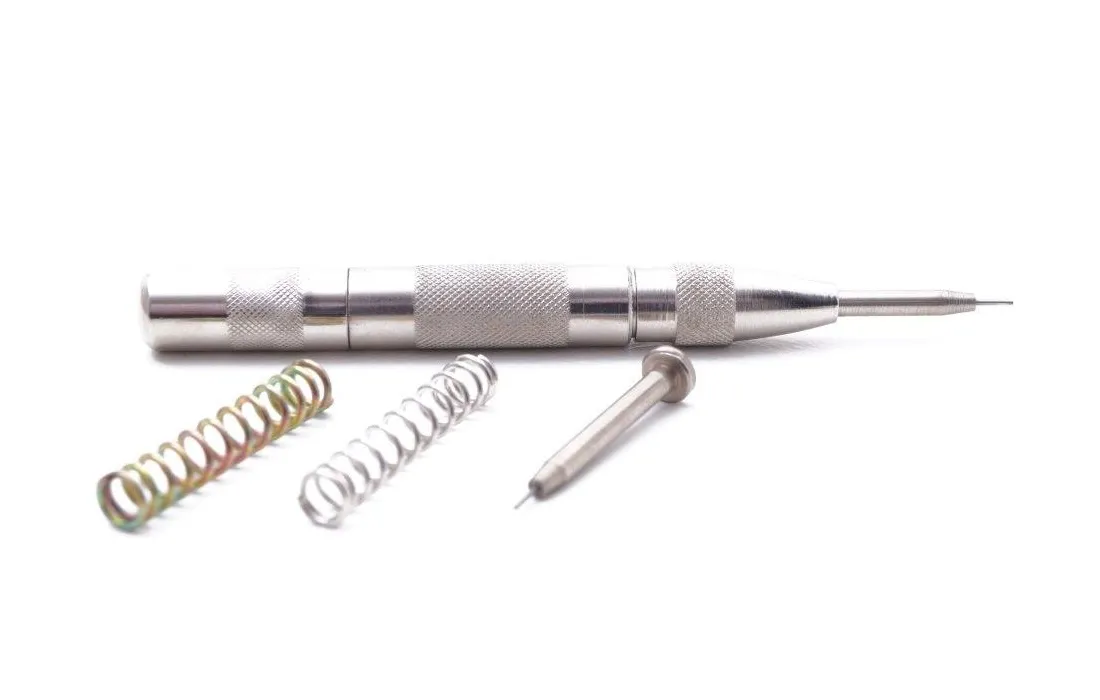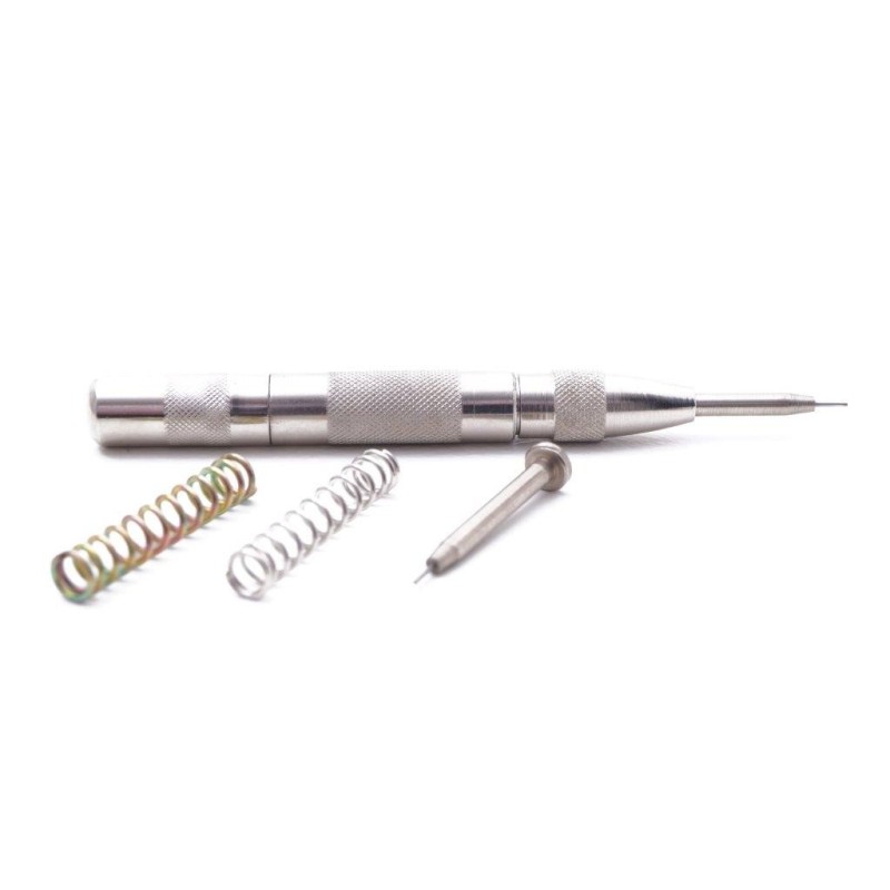 Utensile economico e funzionale. Ideale per togliere le cupiglie dei bracciali senza l'ausilio del martello. Con una leggera spinta sul manico crea una micro percussione sulla cupiglia, fornito con 2 molle di forze diverse e 2 punte