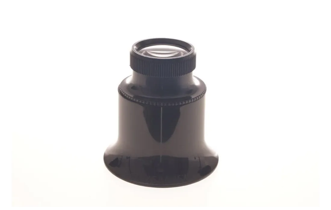 Struttura in bachelite. Doppia lente removibile con 12 ingrandimenti. Indicata per un accurato controllo