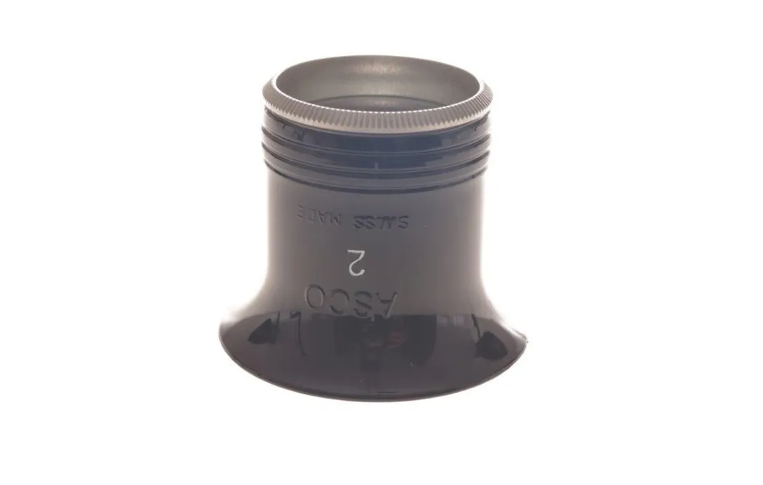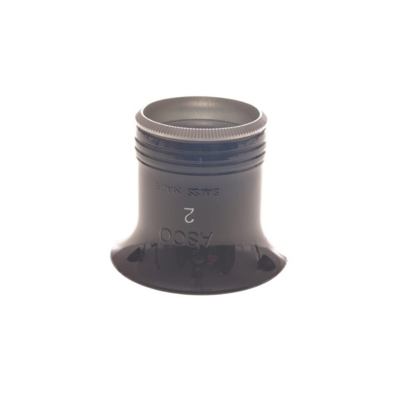 Lente Asco Swiss made, resina di bachelite lucida con lunetta a vite zigrinata in alluminio. Gradazioni da N°1 a 4 - 1= 10x - 1,5= 6,5x -2= 5x - 2,5= 4x - 3= 3,5x - 3,5= 3x - 4= 2,5x indicare la gradazione desiderata tramite la tendina sottostante.