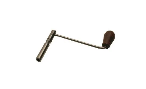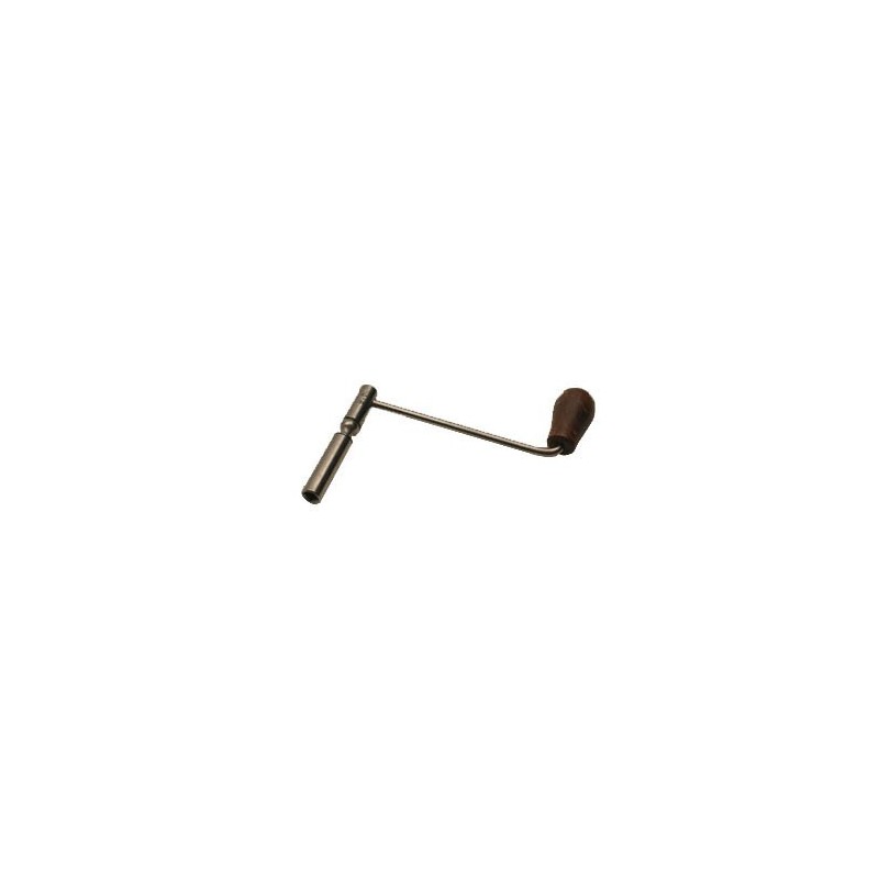 Chiave a manovella in metallo con pomolo in legno.per orologi gran salon- morbier- disponiamo di tutte le misure da 4.00 a 6.25 m/m fabbicazione svizzera
