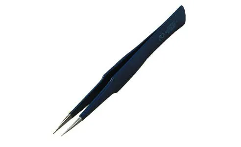 Pinzetta dumont gg in acciaio ricoperta da uno speciale isolante bleu < electronic quality >lungezza tot.130 m/m larghezza punte 0.20 spessore 0.12 m/m