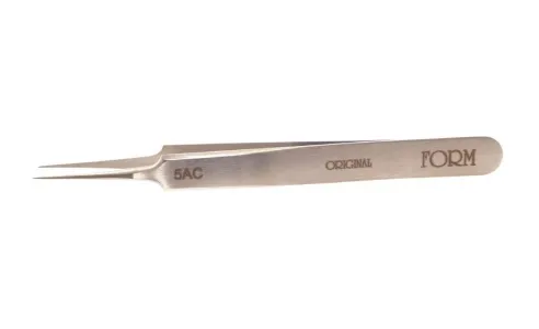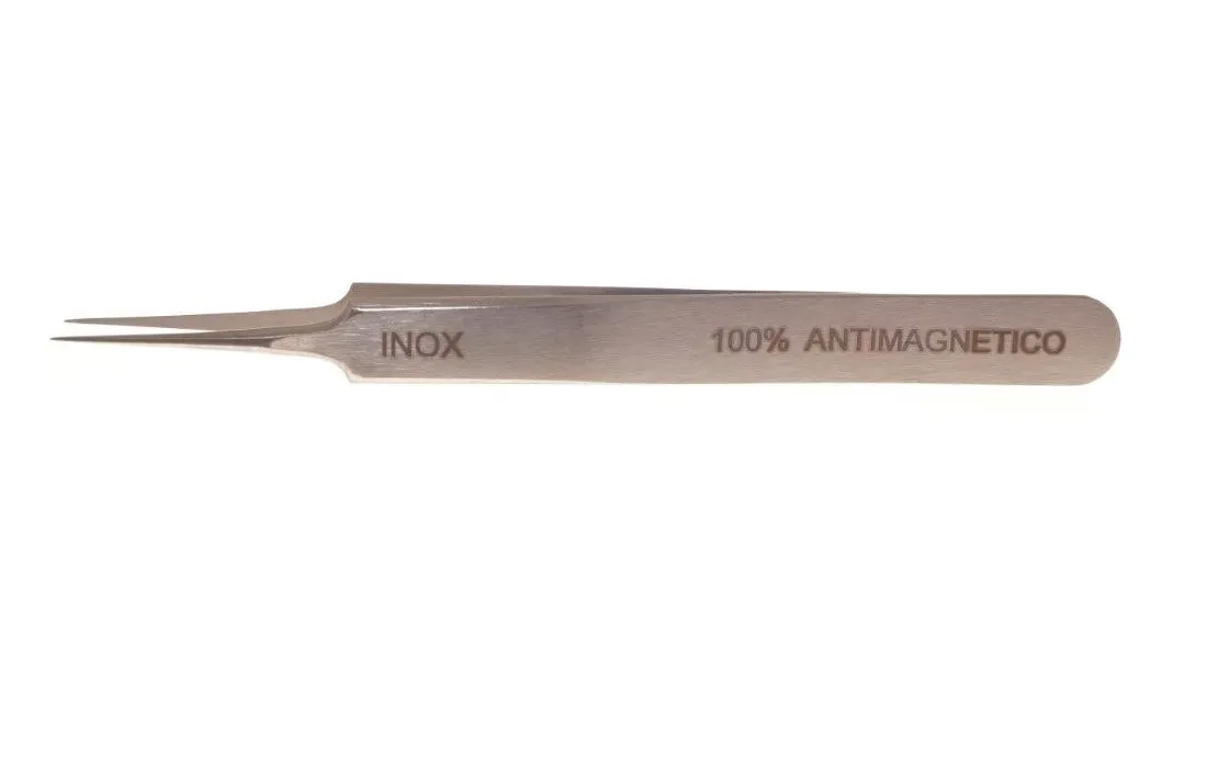 Pinzetta in acciaio carpenter n° 5 con punte extra fini ideale per le spirali lunghezza tot. 110 m/m/ disponibile in carbon. inox. e titanio