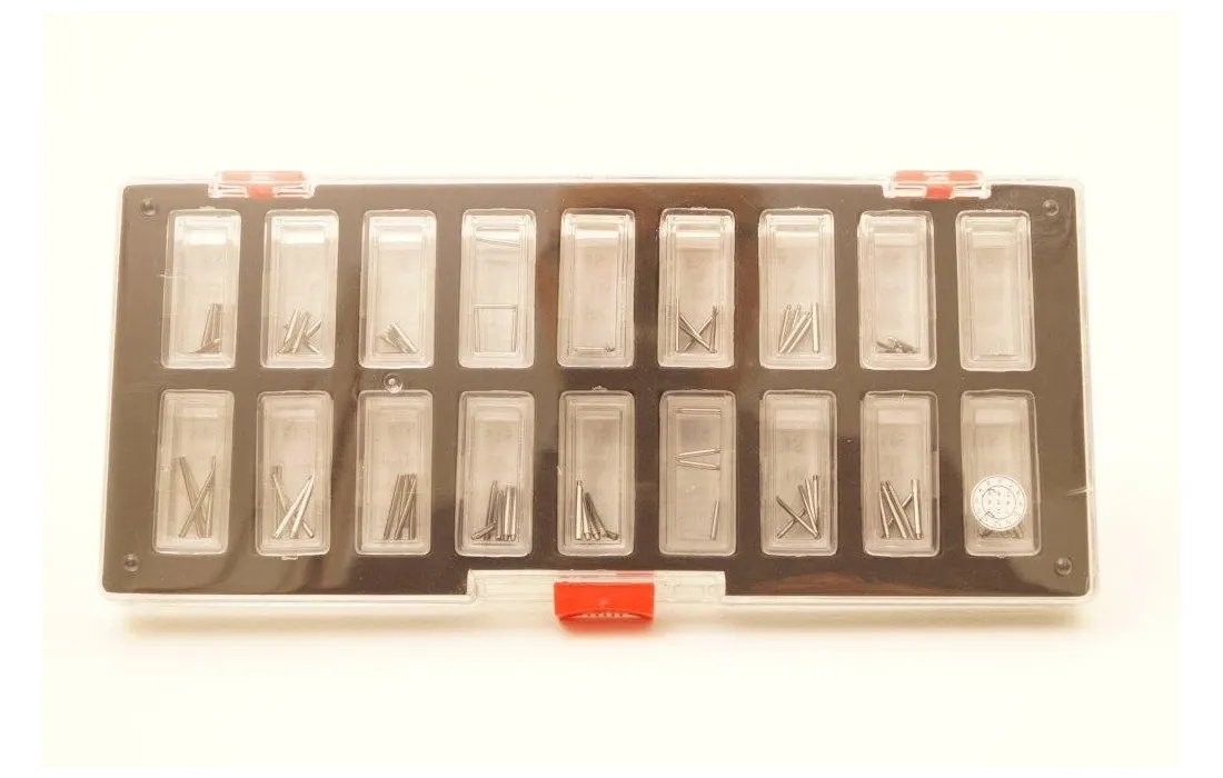 Assortimento di 90 viti di varie misure in acciaio inox per bracciali