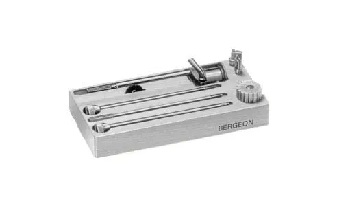 Confez.in legno con: 1 disco a 18 tacche da 0.35 a 1.40 m/m/ 2 porta tasselli centrico ed eccentrico/ + broche universale