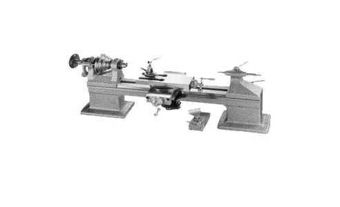 Tornio da banco comlpeto di: puleggia di testa con blocca pinza/ contropunta mobile/ carrello porta utensile con divisione micrometrica 0.02 m/m rotazio.angolare di 180°+1 bulino/alt.dei centr.50 m/m distanz.dei centri 170 m/m diam.pinze 8 m/m ales.