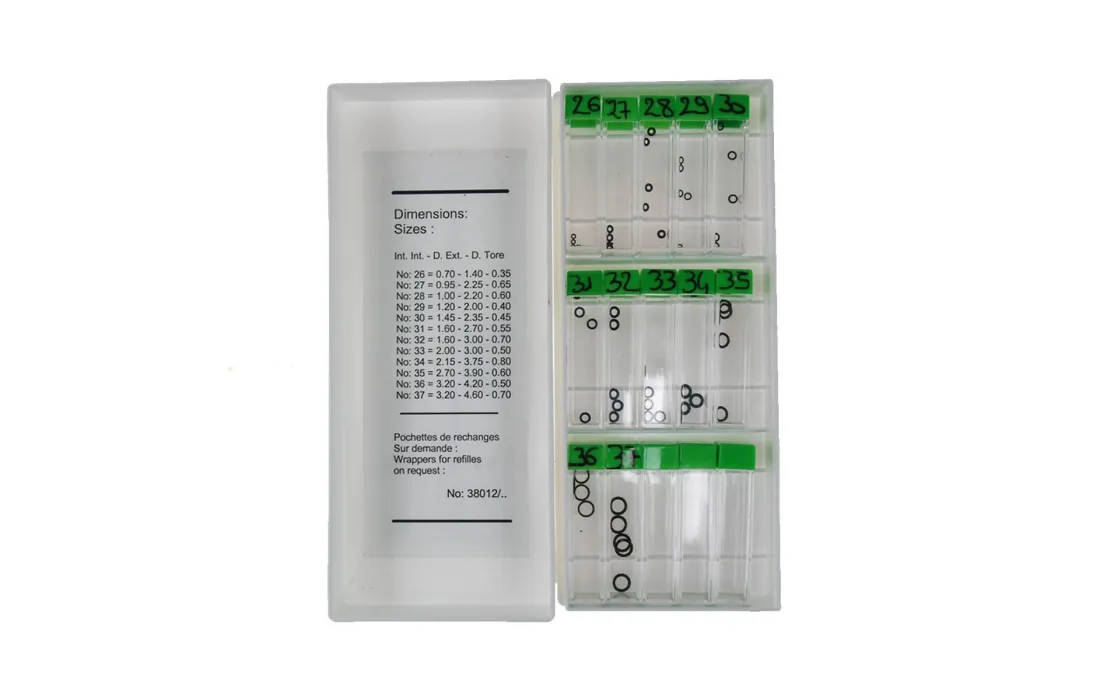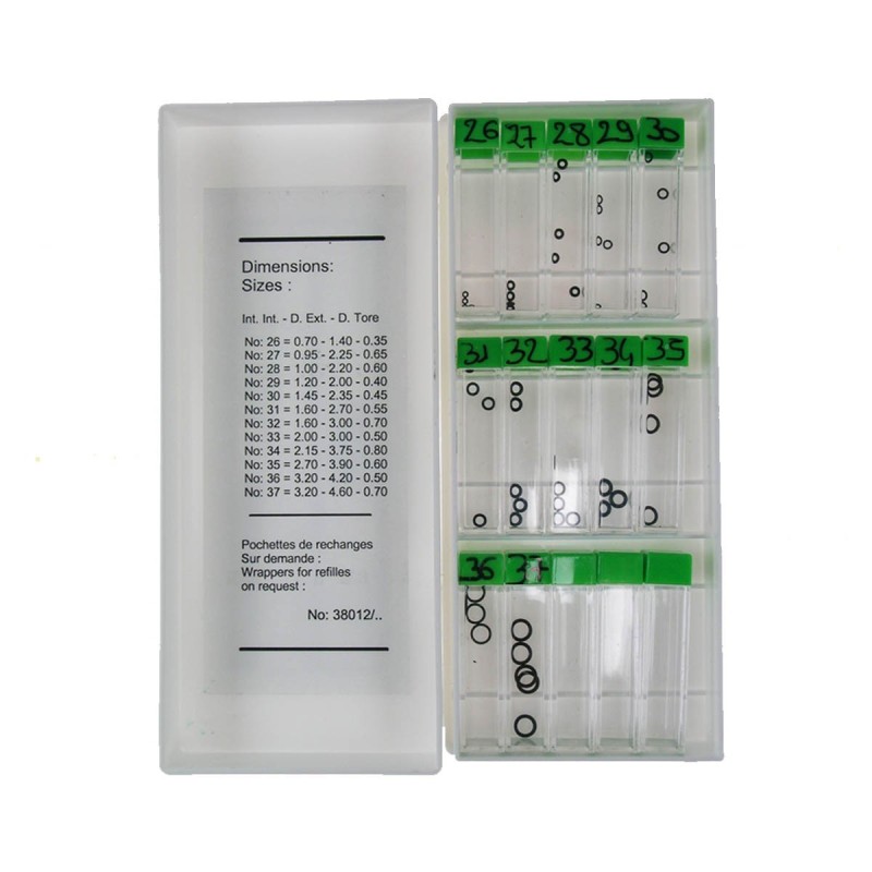 Assortimento riassortibile oring per tubo corona- divisi per: diametro ex diametro interno spessore oring collocazione tubetto e n° riassortimento