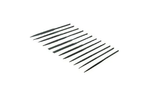 Assotimento 12 lime ad ago con manico zigrinato taglio medio. buona qualita'forme presenti :tonda-quadra-triangolare-mezzatonda-foglia 2 pz piatta 2 pz- piatta a punta - lama coltello-
