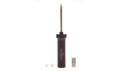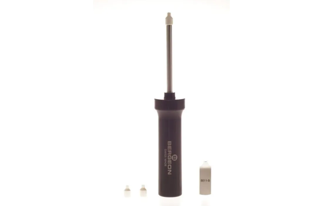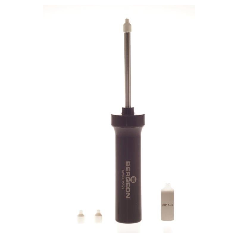 Pompa a pressione d'aria per levare i vetri negli orologi con chiusura monoblocc corredata con 3 adattatori in teflon per tubi cassa da diam.1.60-2.00-2.50- mm più utensile togli corona