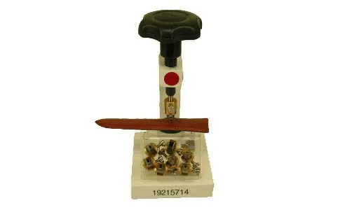 Utensile fora cinturini. in metallo. dotato di 8 fustelle intercabiabili di varie forme
