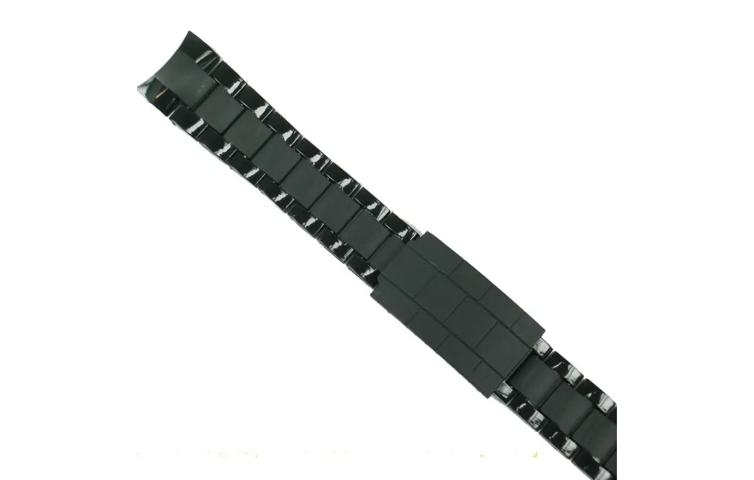 Ansa curva da 20 m/m- chiusura a scatola classica- maglie centrali nere opaco-esterne nero lucido.