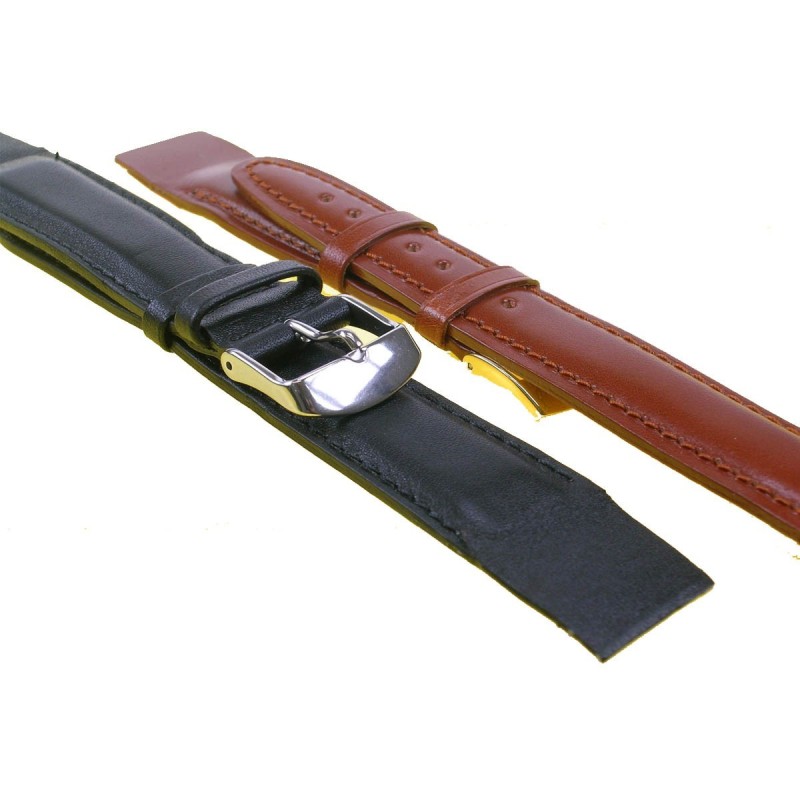 In morbido vitello cucito - imbottito tranciato - fibbia in acciaio - aperto per orologio ad ansa fissa- colori disponibili . nero e gold- misure da 8 a 22 m/m- per misure colori e pellami diversi: su ordinazione- produzione artigianale made in italy