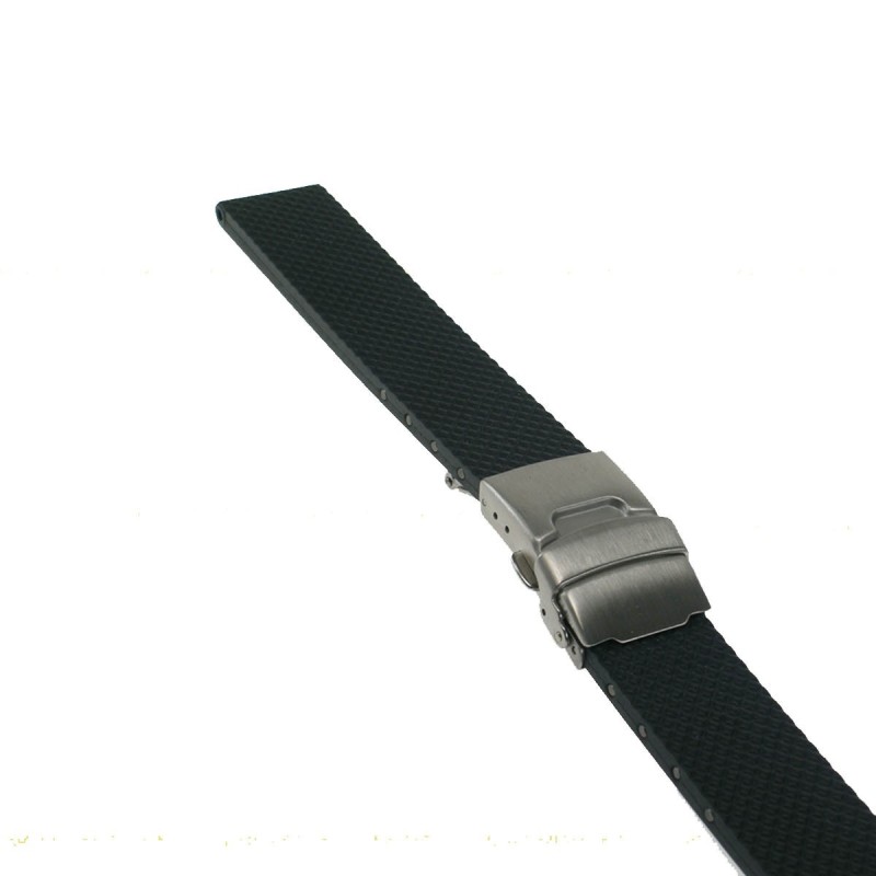 Fibbia/chiusura a scatola con pulsante e sicurezza in acciaio inox - corpo cinturino parallelo da 18 m/m- godronato e liscio- spessore 4 m/m piatto. prodotto italiano.