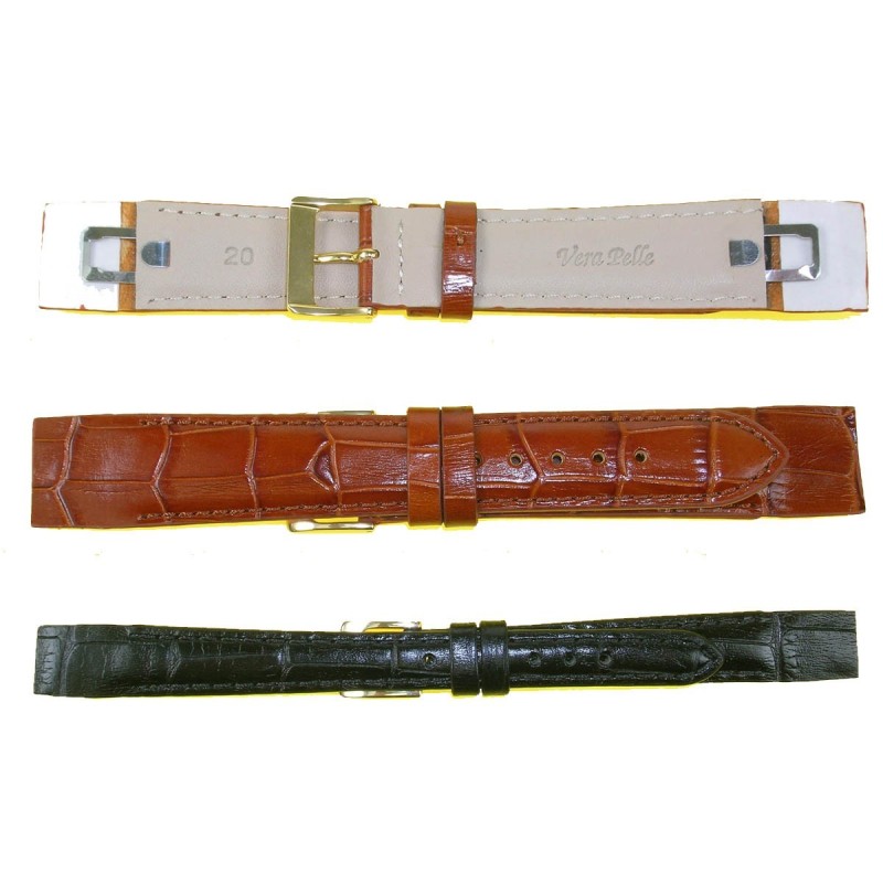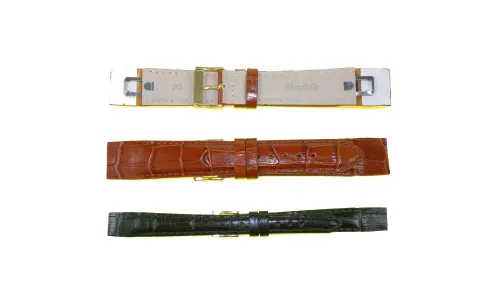 Stampa alligatore in vera pella- semi ribordato e cucito- fibbia acciaio- attacco aperto per cassa ad ansa fissa- misure disponibili da 10 a 22 m/m manifattura 100 % made in italy.